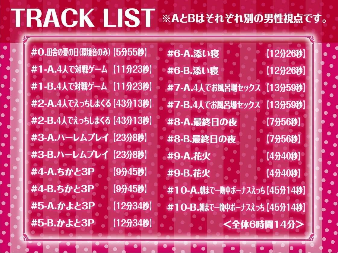 ジャンル: 幼なじみ、乱交、中出し、3P・4P、ラブラブ・あまあま、癒し、男性向け、成人向け、ASMR、バイノーラル