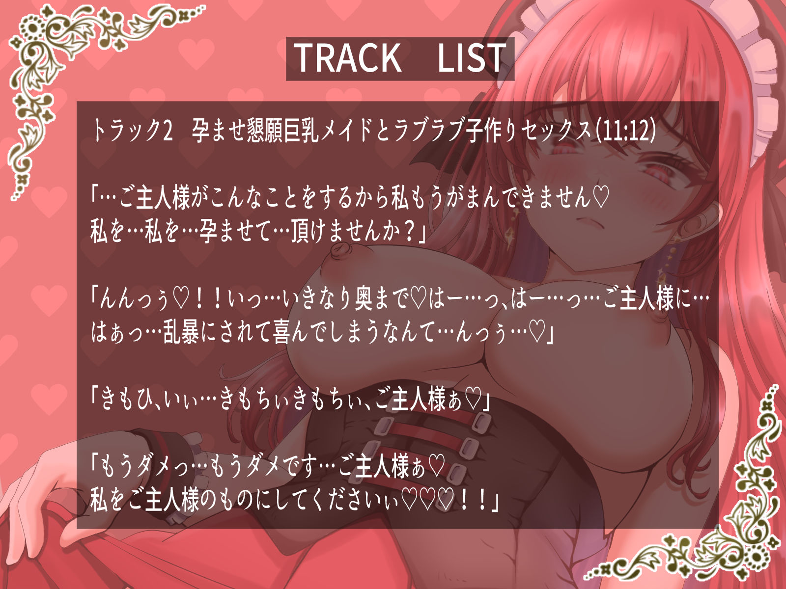 ジャンル: メイド、巨乳、中出し、フェラ、ごっくん、ローター、男性向け、成人向け、ささやき、妊娠・孕ませ、オホ声、ご奉仕