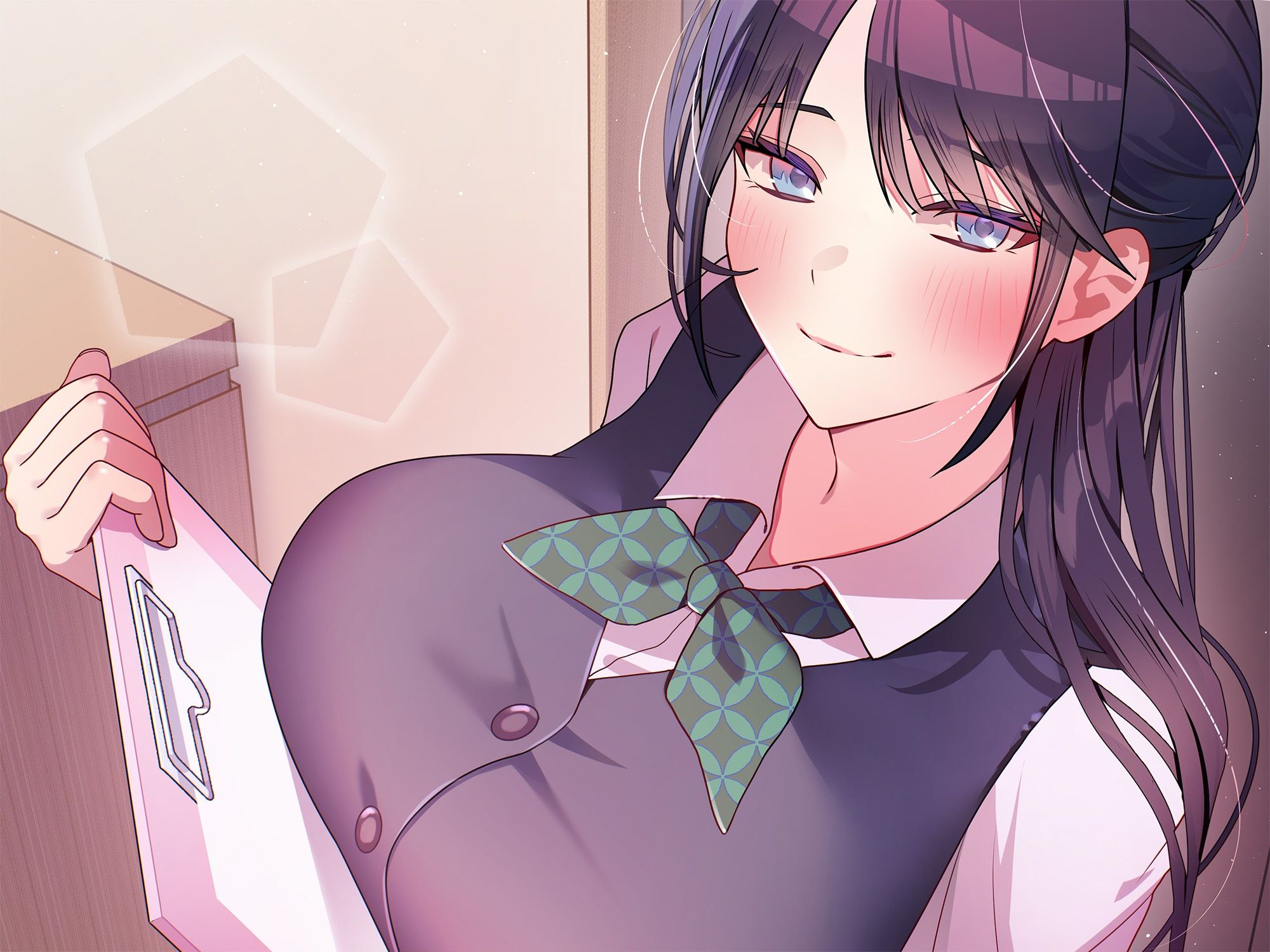 ・スーツを着ていても胸が大きくスタイルが良いのが一目瞭然。