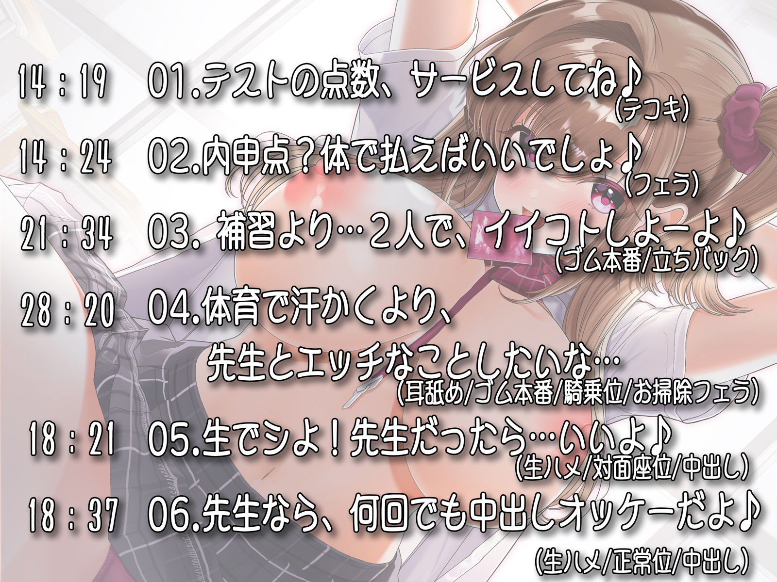 ドスケベギャルが先生を誘惑♪内申点アップのため、お口やおまんこで先生を気持ちよくしちゃいます。巨乳を活かしたパイズリ、超絶技巧の手コキ…さらには本番まで…!アナタは先生として、生徒からの誘惑を断ることができるでしょうか?