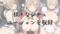 収録しているシチュはフェラ、パイズリ、手コキ、尻コキ、太股コキ、素股、尻揉み、胸揉み、手マン、キス、バイブ、ぶっかけ、正常位、後背位、立ちバック、種付けプレスなど