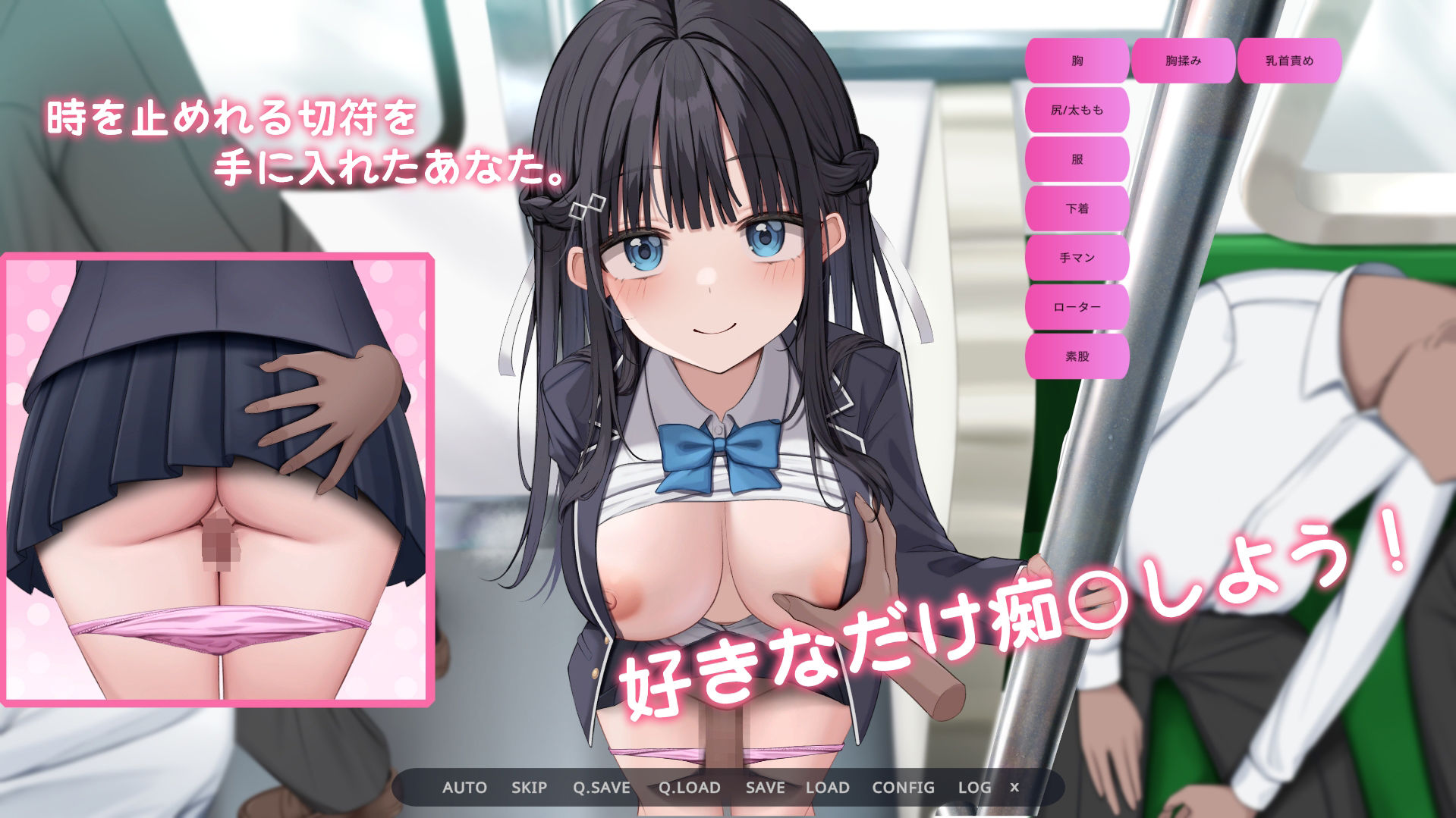 ジャンル: 動画・アニメーション、制服、巨乳、フェラ、時間停止、シミュレーション、電車、おさわり、断面図あり、男性向け、成人向け、学生、オホ声