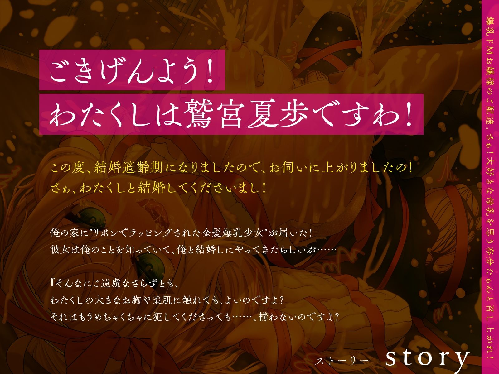 爆乳ドMお嬢様のご配達。さぁ!大好きな母乳を思う存分たぁんと召し上がれ!(KU100マイク収録作品) あらすじ