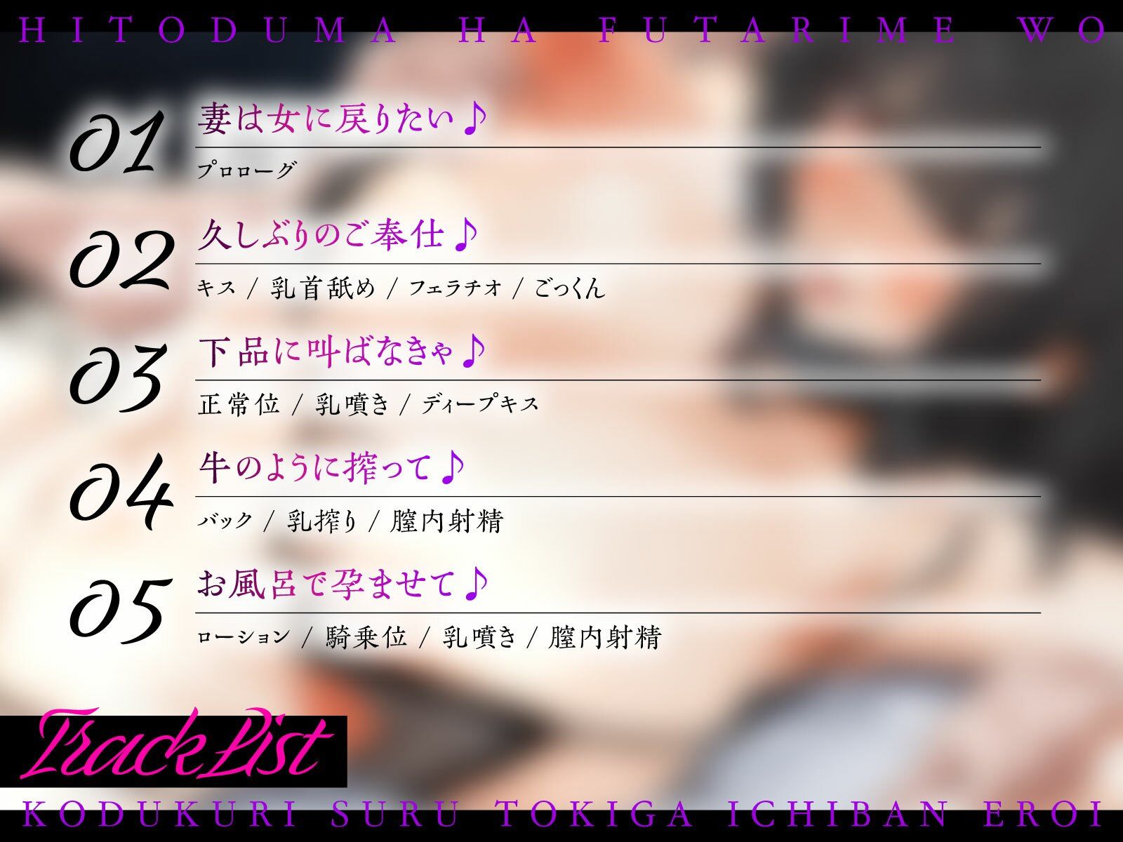 ジャンル: 人妻・主婦、中出し、母乳、おっぱい、搾乳、男性向け、成人向け、バイノーラル、淫乱、アヘ顔、オホ声、KU100
