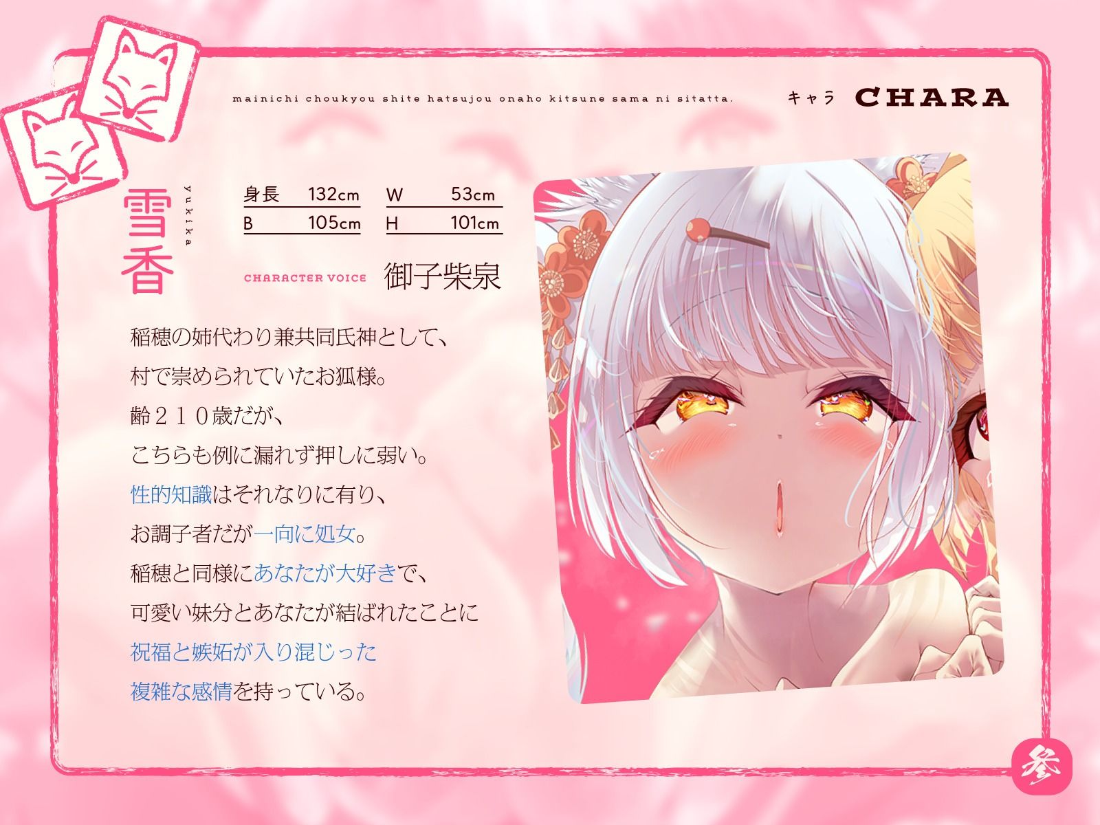 【母性あふれる純情お狐様にちんぽお世話をおねだり。毎日調教して発情オナホ狐様にしたった。2匹目!(KU100マイク収録作品)】 作者名